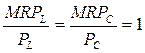 Заметим, что в отличие от равенства, обуславливающего минимизацию издержек, где предполагается пропорциональное соотношение МР и Р (т.е. фирма может минимизировать издержки, если МРL/РL = МРC/РC=1), условие максимизации прибыли означает, что величина MRP ресурса равняется предельным издержкам на ресурс (цене ресурса) и MRPL/PL = MRPc/Pc=l.