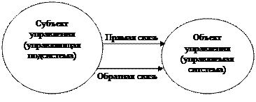 В соответствии с действующей теорией под управлением понимается процесс воздействия субъекта управления на объект с помощью прямых и обратных связей (рис. 1.1).