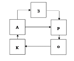 В соответствии с данной схемой задающий блок определяет план или программу действий, которая служит основой для принятия конкретных управленческих решений регулирующим блоком. Регулирование деятельности объекта поддерживается с помощью экономико-правовых и организационно-распорядительных рычагов управления. Информация о реакции объекта управления поступает в блок контроля, в котором информационные материалы обрабатываются и поступают в аналитический блок, где происходит их глубокая аналитическая проработка, осуществляется прогнозирование и формулируются предложения для корректировки выбранного курса и направлений его реализации. Подготовленные аналитические материалы поступают в задающий и регулирующий блоки, т. е. структуры, ответственные за принятие стратегических и текущих управленческих решений. В результате формируются два взаимосвязанных контура: контур регулирования - Р-О-К-А-Р и контур управления - 3-Р-О-К-А-З.