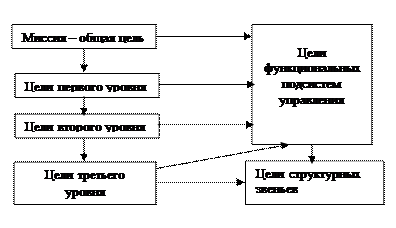 • общая цель - миссия - содержит описание конечного результата управленческого процесса;