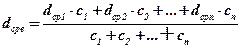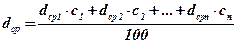 Так как сумма с1 + с2 +... + сn = 100 %, то dср определяют по формуле: