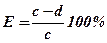 Пусть в исходном материале содержание по массе зёрен нижнего класса составляет c %, из которых d % не просеялись сквозь сито. Тогда эффективность грохочения составит: