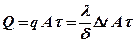Общее количество теплоты, переданное теплопроводностью для стационарного температурного поля через плоскую стенку толщиной δ с поверхностью А за время τ при разности температур на наружных поверхностях стенки Δ t: