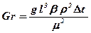 Так как Δ ρ = ρ0 - ρ0 (1 - β Δ t) = ρ0∙β∙ Δ t, то, подставляя в критерий Ar вместо Δ ρ его значение, получают критерий Грасгофа, который характеризует соотношение подъемной силы и силы вязкости среды, т.е. характеризует режим движения теплоносителя при свободной конвекции