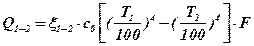 где ξ 1-2– приведённая степень черноты системы; F – условная расчётная поверхность теплообмена; T1 и T2 – абсолютные температуры тел.