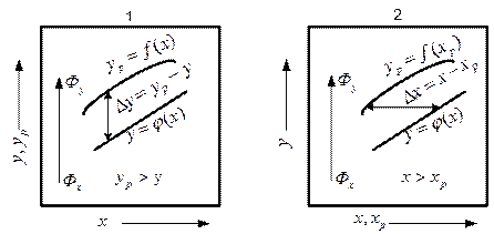 Как видно из рис. 6.2, во всех случаях движущая сила в данном сечении аппарата выражается разностью Δ y = yр – y или Δ x = x – xр в первом случае и разностью Δ y = y – yр или
