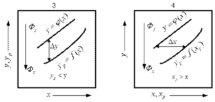 На диаграммах 1 и 2 рис. 6.2 представлен случай, когда yр > y и x > xр и распределяемый между фазами компонент переходит из фазы Фх в фазу Фy, а на диаграммах 3 и 4 этого же рисунка – случай, когда y < yр и xр > x и распределяемый между фазами компонент переходит из фазы Фy в фазу Фx.