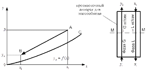 Пусть имеются две фазы G и L, причем распределяемое вещество вначале находится только в первой фазе G и имеет концентрацию Y. Если привести фазы в соприкосновение, то распределяемое вещество начнет переходить в фазу L. С момента появления распределяемого вещества в фазе L начнется и обратный его переход в фазу G.