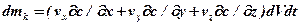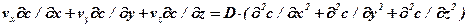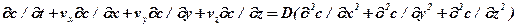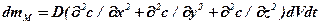 За счёт только молекулярной диффузии количество распределяемого вещества в объёме параллелепипеда за время dt изменится на величину