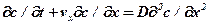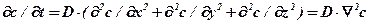 При одномерной диффузии в неустановившемся процессе уравнение второго закона Фика имеет вид