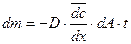 Тогда по аналогии с теплопроводностью удельный поток вещества, переносимого молекулярной диффузией через единицу поверхности в единицу времени: