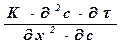 При одномерной диффузии (например, в направлении x) в неустановившемся процессе уравнение 2-го закона Фика имеет вид