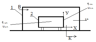 1 – установка; 2 – материал; о.в. – отбор отработанного воздуха; k – отбор конденсата;