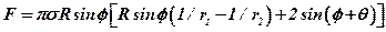 где σ – поверхностное натяжение на границе жидкость – газ; R – радиус сферических частиц; φ – угол, зависящий от уровня жидкой фазы; r1, r2 – радиусы кривизны поверхности жидкости; θ – краевой угол смачивания.