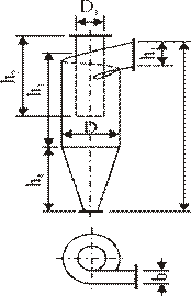 Диаметр циклона D определяют по условной скорости газа wц, отнесенной к полному поперечному сечению цилиндрической части циклона: