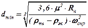 где Rц – внутренний радиус циклона, м; ωокр – окружная скорость в циклоне, принимаемая равной 12…14 м/ с; μ – коэффициент динамической вязкости среды, равный 1,82×10-5 Па×с; ρтв – плотность переносимого газом материала, кг/м3 (кварцит – 2500...2800, известняк плотный – 2500...2800, портландцемент – 2600...3200, гипс – 1800...2000); ρж – плотность воздуха, равная 1,2 кг/м3.