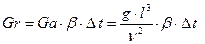 ρ – плотность, кг/м3; g – ускорение свободного падения, м/c2; β – коэффициент объемного расширения, K-1; ∆ t – разность температур стенки и жидкости (или наоборот), K.