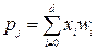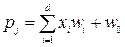 Информация, поступающая на вход нейрона, суммируется с учетом весовых коэффициентов сигналов: