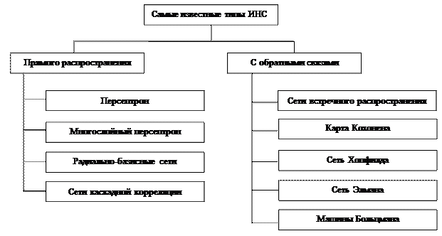 Рисунок 2.7 – Классификация распространённых видов ИНС.