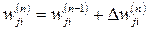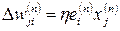 Минимизация функции осуществляется по дельта-правилу, или правилу Видроу-Хоффа. Обозначим wji(n) текущее значение синаптического веса wji нейрона i, соответствующего входу xj на шаге обучения n. В соответствии с дельта-правилом, изменение синаптического веса задается выражением: