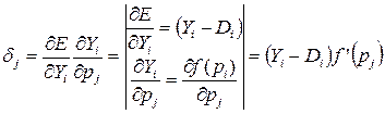 Обозначим ошибку нейрона в некотором слое j следующим образом: