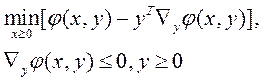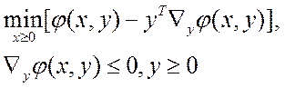 Теорема. Неотрицательный вектор х* является оптимальным решением задачи (1) т.т.т.к. существует неотрицательный вектор у*,что пара (х*,у*) является седловой точкой функции Лагранжа
