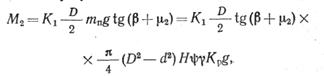 Момент М2 (кН·м), необходимый для обеспечения подъема породы шнеком, при максимальной глубине Н (м) его погружения в скважину будет