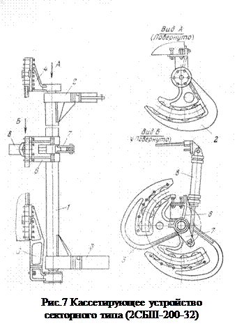 Кассетирующее устройство секторного типа (рис.7 ) представляет собой трубу 1 с верхним 2 и нижним 3 секторами, в