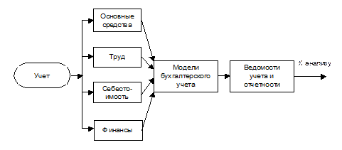 Комплекс задач, решаемых в этой фазе, относится в основном к задачам бухгалтерского учета и имеет в своем составе такие задачи как учет основных средств и материальных ценностей, учет труда и его оплаты, учет себестоимости продукции, учет денежных операций и т.п. Математические модели здесь достаточно просты, а итоговой информацией являются бухгалтерские регистры учета и отчетности, характеризующие состояние производства (рис. 10).