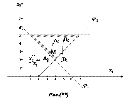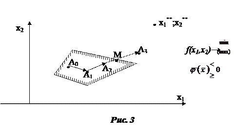 любым известным методом (координатного спуска, метод наискорейшего спуска и т.д.). Это движение происходит по итерациям. На каждой итерации проводится проверка на принадлежность полученной точки многоугольнику ограничений, затем делают следующий шаг – опять проверка и т.д. Если в результате новой итерации полученная точка не принадлежит уже многоугольнику, то тем самым мы определяем какую грань (ребро) мы «пронзили».