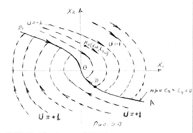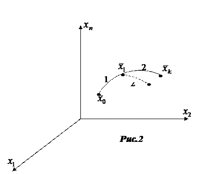 и показанной пунктиром на рис.2. Но в этом случае можно было бы построить «лучшую» траекторию, чем траектория 1-2, и для первоначальной задачи, нужно лишь выбрать управление