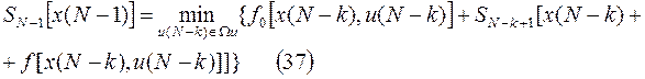 , минимизирующих сумму (32) при условиях (4), (30) и (31), наложенных на систему таким образом, требуется найти минимум сложной функции многих переменных. Однако МДП дает возможность свести эту операцию к последовательности минимизаций значительно более простых функций одного переменного.