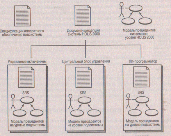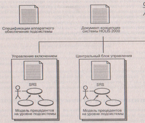 • Так как в каждой из подсистем HOLIS достаточно много программного обеспечения, команда решила разработать для каждой из трех подсистем отдельную спецификацию требований к программному обеспечению, а также модель прецедентов, отражающую, как каждая подсистема взаимодействует с различными акторами.