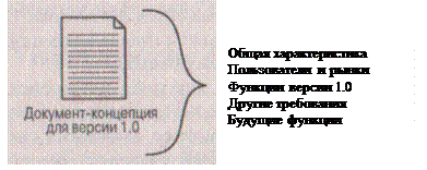 Разработка документа-концепции и работа с ним, являясь центром приложения действий многих участников (заказчиков, пользователей, представителей руководства проекта и маркетинга, могут играть заметную роль в успехе (или неудаче) программного проекта. Зачастую к разработке и пересмотру этого документа привлекается даже дирекция компании. Ведение до.документа-концепции является важным профессиональным приемом, который в состоянии значительно повысить общую производительность работы над проектом.