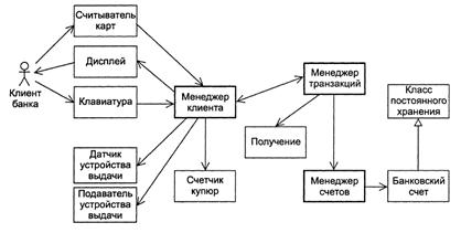 кассира и Устройство выдачи). Кроме того, активные классы (Менеджер клиентов,
