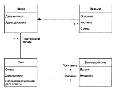 Пример. Классы предметной области Заказ, Счет, Предмет и Банковский счет.