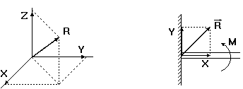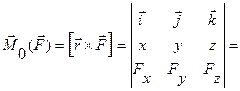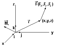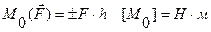 2. Векторный момент силы относительно точки. Векторным моментом силы относительно точки называют вектор, приложенный в этой точке и равный по модулю произведению силы на плечо силы относительно этой точки. Векторный момент направлен перпендикулярно плоскости, в которой лежат сила и моментная точка, таким образом, что с его конца можно видеть "стремление" силы вращать тело против движения часовой стрелки.