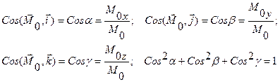 Косинусы углов a,b,g суть проекции на оси координат единичного вектора, направленного по вектору момента M0.