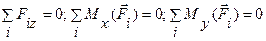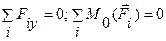 Для плоской системы параллельных сил имеем два уравнения равновесия: