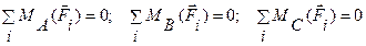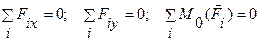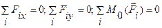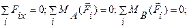 Для равновесия плоской системы параллельных сил имеем альтернативную форму условий равновесия