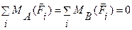 Эта новая система сил, эквивалентная нулю, удовлетворяет условиям равновесия системы сил и, в частности, условию равенства нулю суммы векторных моментов сил относительно любой точки: