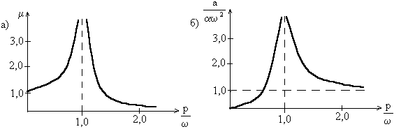 При малой частоте возмущающей силы динамический коэффициент близок к единице. С ростом частоты p динамический коэффициент быстро увеличивается и при