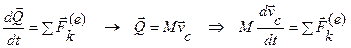 т.е. центр масс системы движется как точка по второму закону Ньютона, как если бы к ней была приложена равнодействующая всех внешних сил.