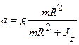 = (J/R)a, где t = a/R, и решим его относительно ускорения а.