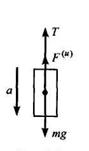 Для определения натяжения нити разорвем гибкую связь и заменим ее действие натяжением Т. Добавляя внешнюю силу mg и силу инерции F(и), имеем