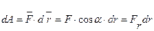 Элементарная работа является скалярной величиной. Если α -угол между вектором силы