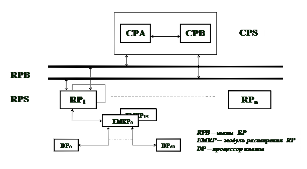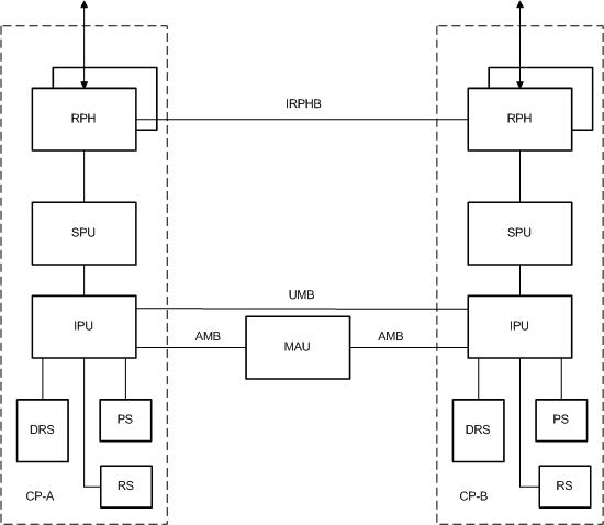 1.7.1 APZ имеет иерархическую структуру.Высший уровень управления – блоки центрального управления, которые образуют подсистему центрального процессора CPS. CPS состоит из сдвоенного процессора СР-А и СР-В. Стороны А и В работают синхронно, принимают и выдают команды в RP. RP принимает команды, проверяет на четность, но выполняет команду ведущей стороны (ведущего процессора).