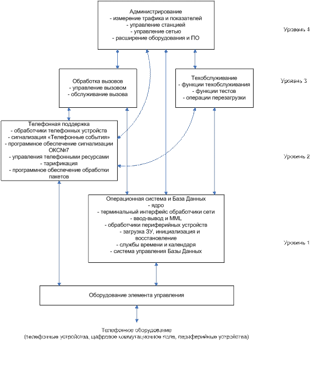 Программное обеспечение системы Alcatel 1000S12 имеет иерархическую структуру, включающую в себя четыре уровня (рисунок 3.3).