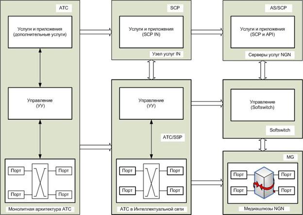 Дорогостоящие традиционные АТС в единой структуре объединяют функции коммутации, функции управления обслуживанием вызовов, услуги и приложения, а также функции биллинга. Такая коммутационная станция представляет собой монолитную, закрытую системную структуру, как правило, не допускающую расширения или модернизации на базе оборудования других производителей.