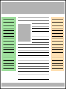Одна из колонок отдается под навигацию, вторая, самая широкая — под основной текст, а в третью колонку добавляют рекламу, ссылки, текст и т.д.